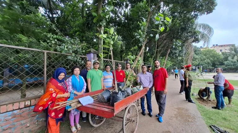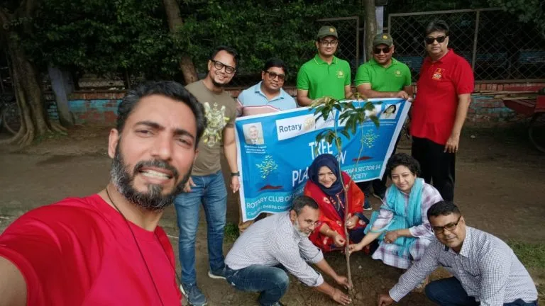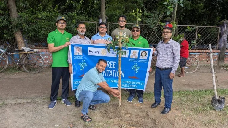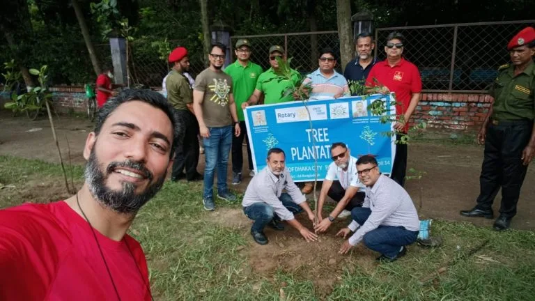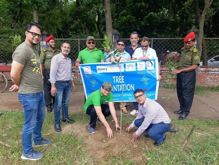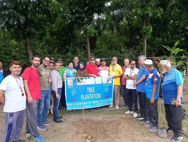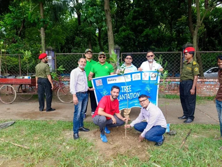 The Rotary Club of Dhaka City successfully organized a tree plantation campaign to promote environmental sustainability. Members actively planted trees to encourage greenery and awareness under the slogan “Save Green, Live Clean.”